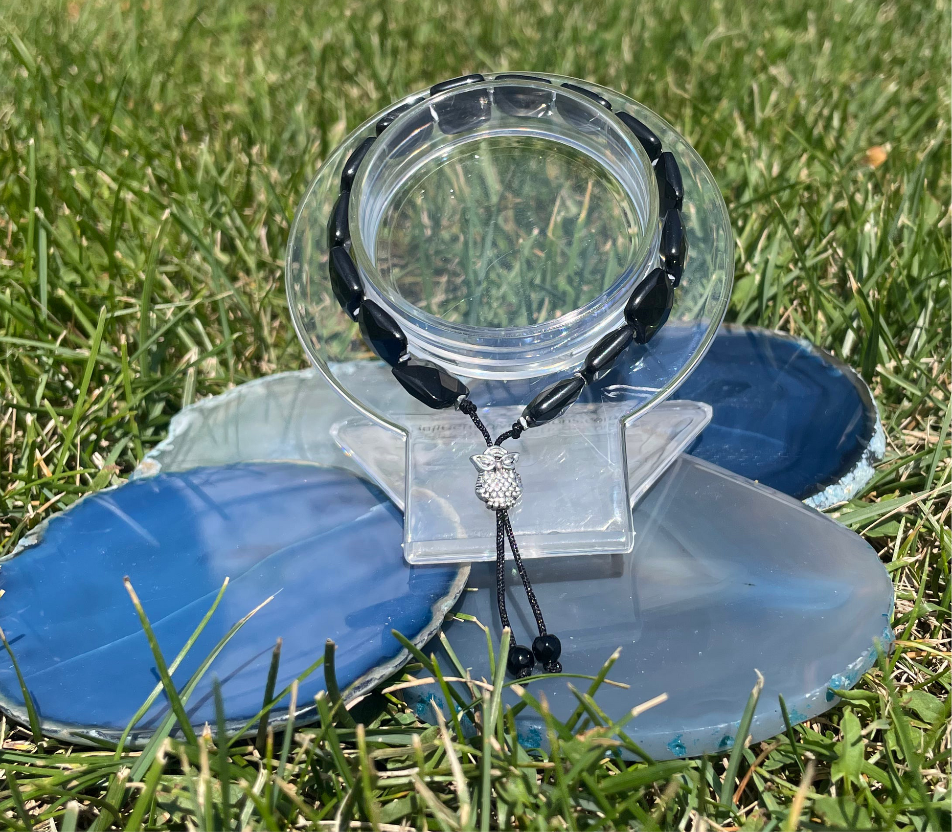 Influential Vibrations - Faceted Black Obsidian Crystal Owl Charm bracelet