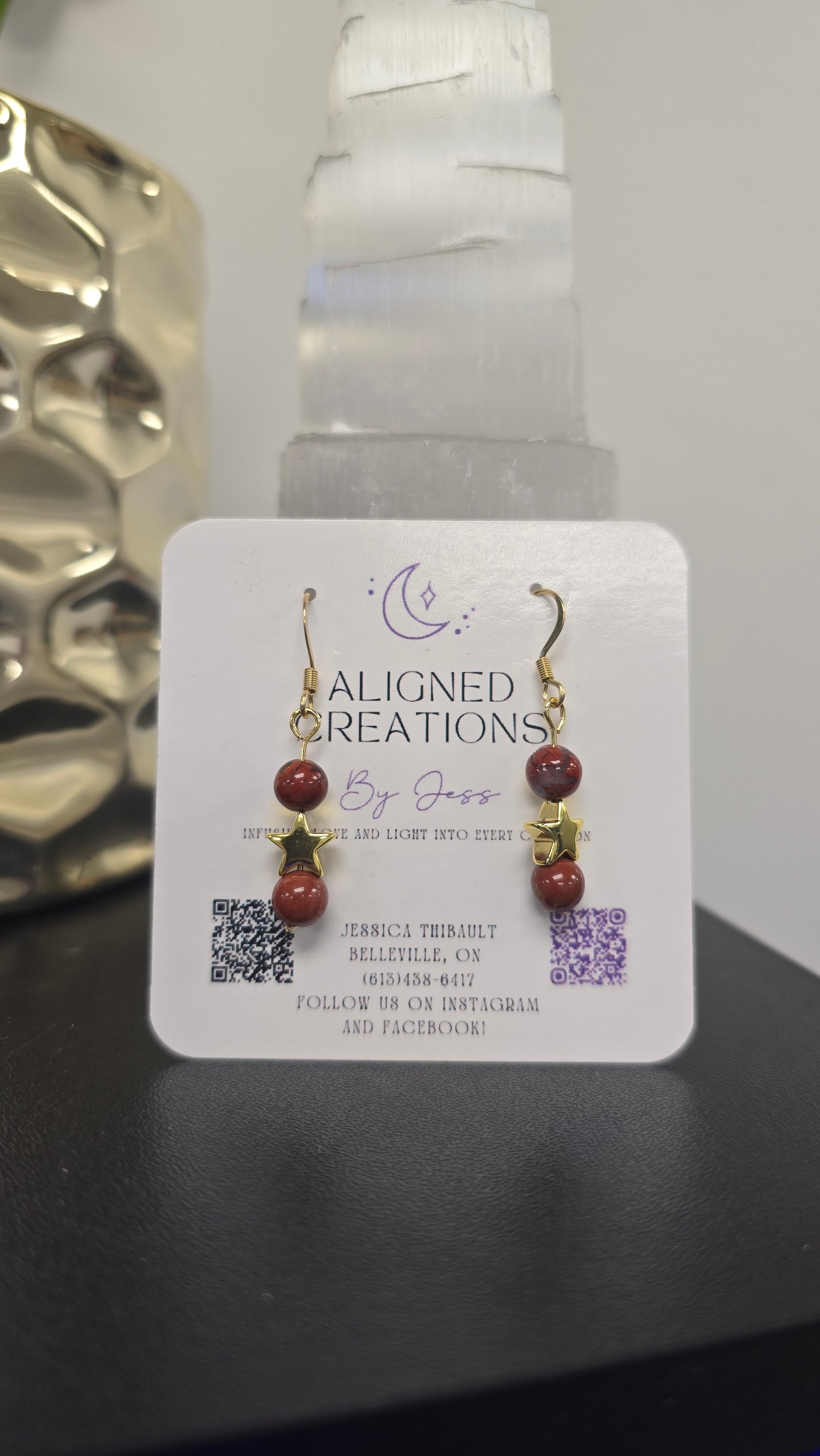Lunar New Year Earrings with Gold Hematite and Red Jasper
