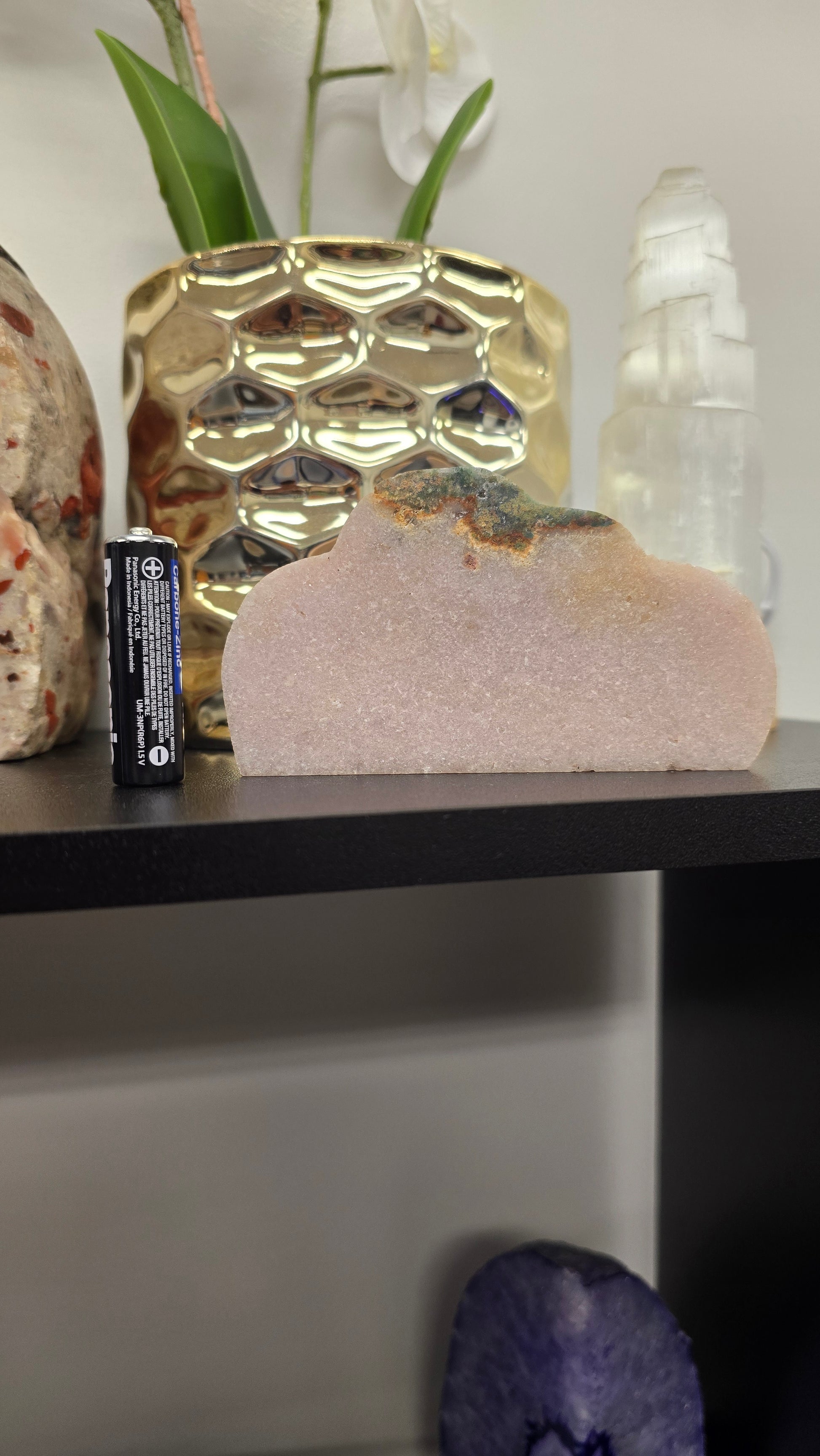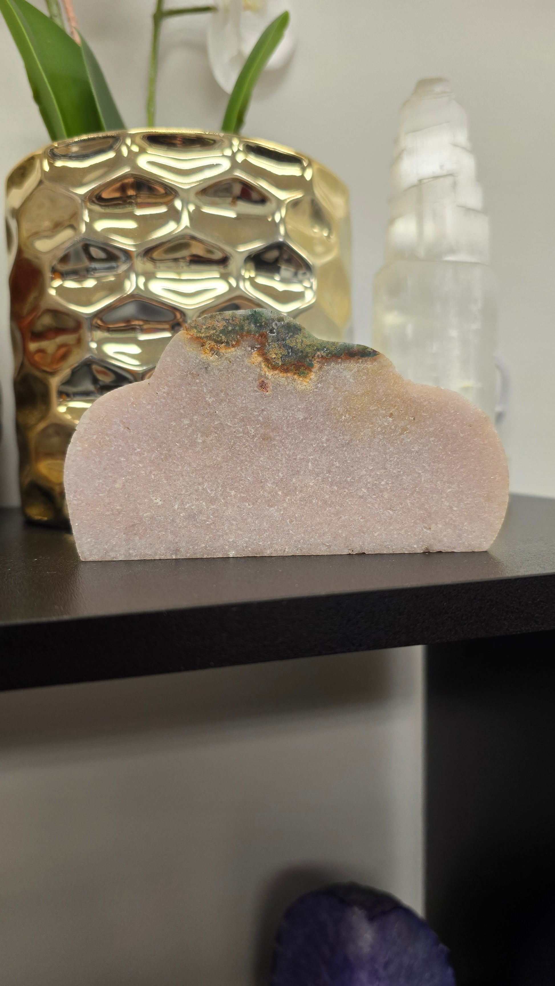 Experience the beauty and power of nature with our Pink Amethyst Cloud! This stunning stone weighs 208 gr and glimmers with shades of pink. Its calming energy brings harmony and balance to your surroundings, making it the perfect addition to your home or office. Embrace the magic and transform your space today!