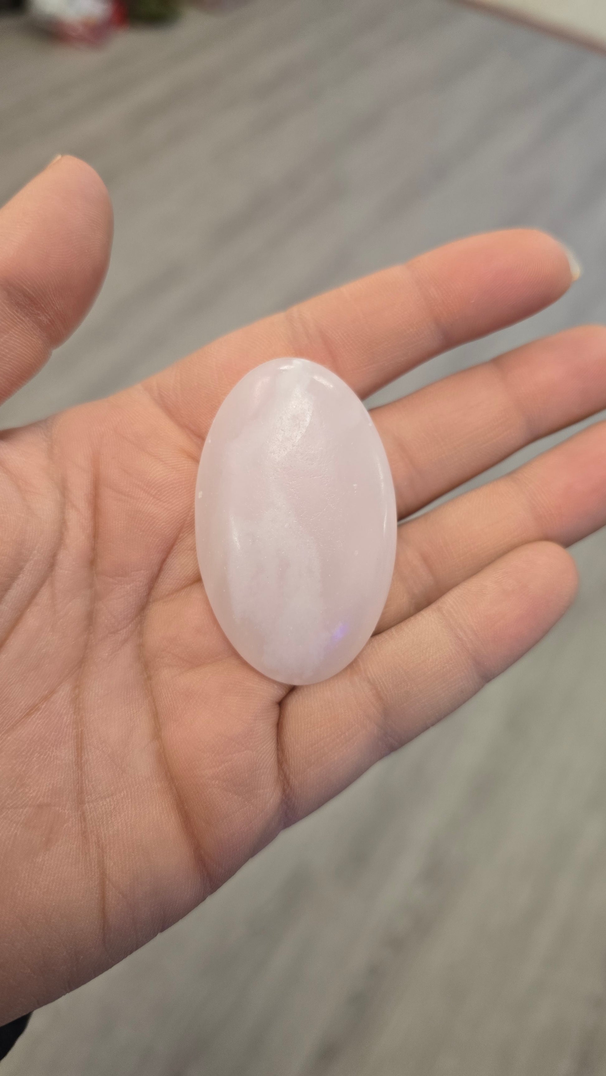 This Pink Mangano Calcite Palm Stone is a must-have for any crystal enthusiast. Known for its calming and nurturing properties, this palm stone is perfect for reducing stress and promoting emotional healing. Its beautiful pink color adds a touch of elegance to any crystal collection.