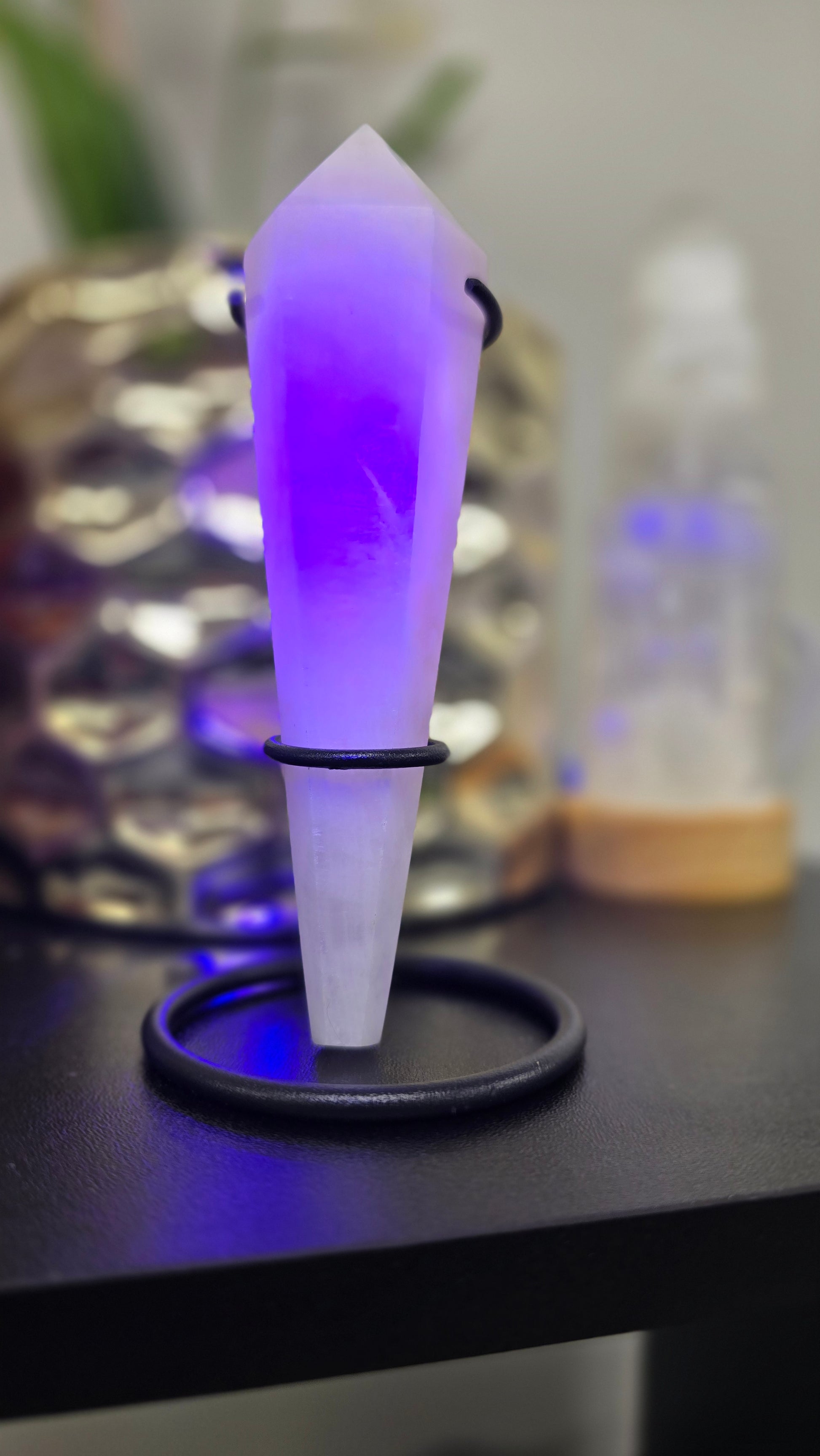 Transform your space into a calming oasis with our Pink Mangano Calcite Wand and Stand. This soothing crystal brings loving energy and positivity, perfect for promoting relaxation and inner peace. Display it on the included stand for a beautiful addition to any room.