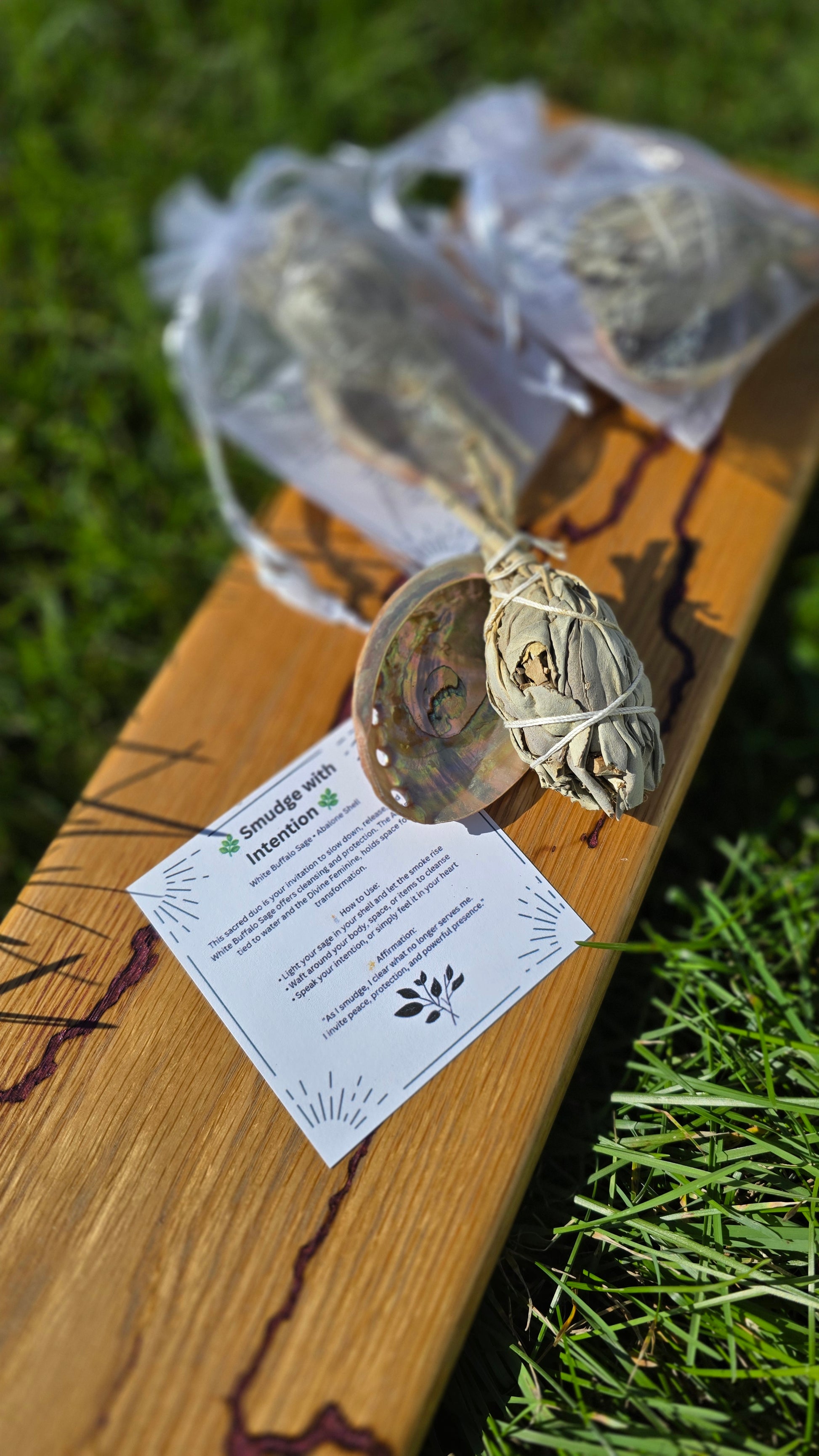 Revitalize your space with our Smudge Kit! Includes a sage stick and abalone shell for cleansing and purifying any environment. Experience the calming and uplifting effects of this ancient tradition. Perfect for new homes and workspaces, or to refresh and cleanse your current space.