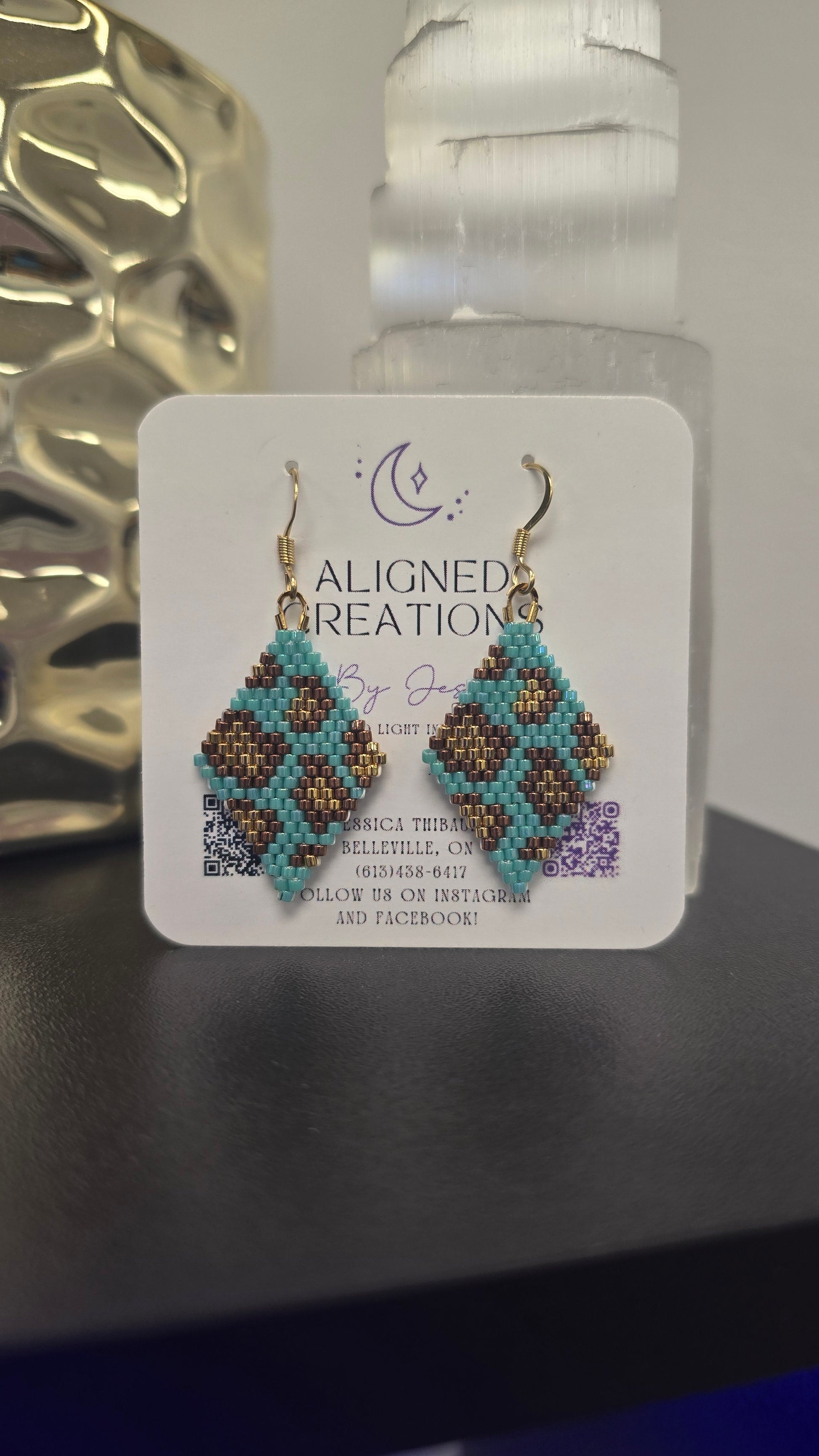 The Spotted Strength Collection features hand-beaded earrings crafted with Delica seed beads, known for their uniform shape, precision, and smooth finish. Each pair is created bead by bead, forming intentional repeating patterns that symbolize resilience, balance, and inner strength.